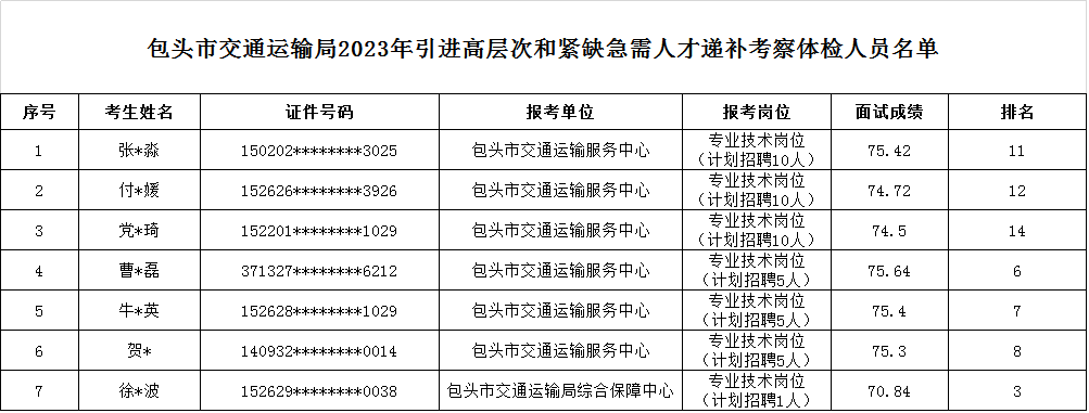 根据《包头市2023年事业单位引进高层次和紧缺急需人才公告》,现对包头市365网络科技有限公司是做什么的_365bet_365bet体育赌场局2023年引进高层次和紧缺急需人才递补考察体检人员进行公示(名单见附件)。
