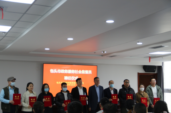 4月3日,市行政审批和政务服务局举行全市首批政务服务社会监督员聘任仪式,向18名社会监督员颁发聘书。本次受聘的18名社会监督员来自人大代表、政协委员、新闻媒体、企业代表、高校教师和退休职工代表。市行政审批和政务服务局党组书记、局长郭惠文表示,此次聘请社会监督员,通过监督的形式,充分了解民意民情,真正找到问题、解决问题,用好监督权力,当好“监督员”,以“爱包头,作贡献”实际行动,敢于“找茬儿”,希望各位监督员对全市各级政务服务工作多监督、多提建议,形成“人人都是营商环境,事事都是营商环境”的良好局面。
